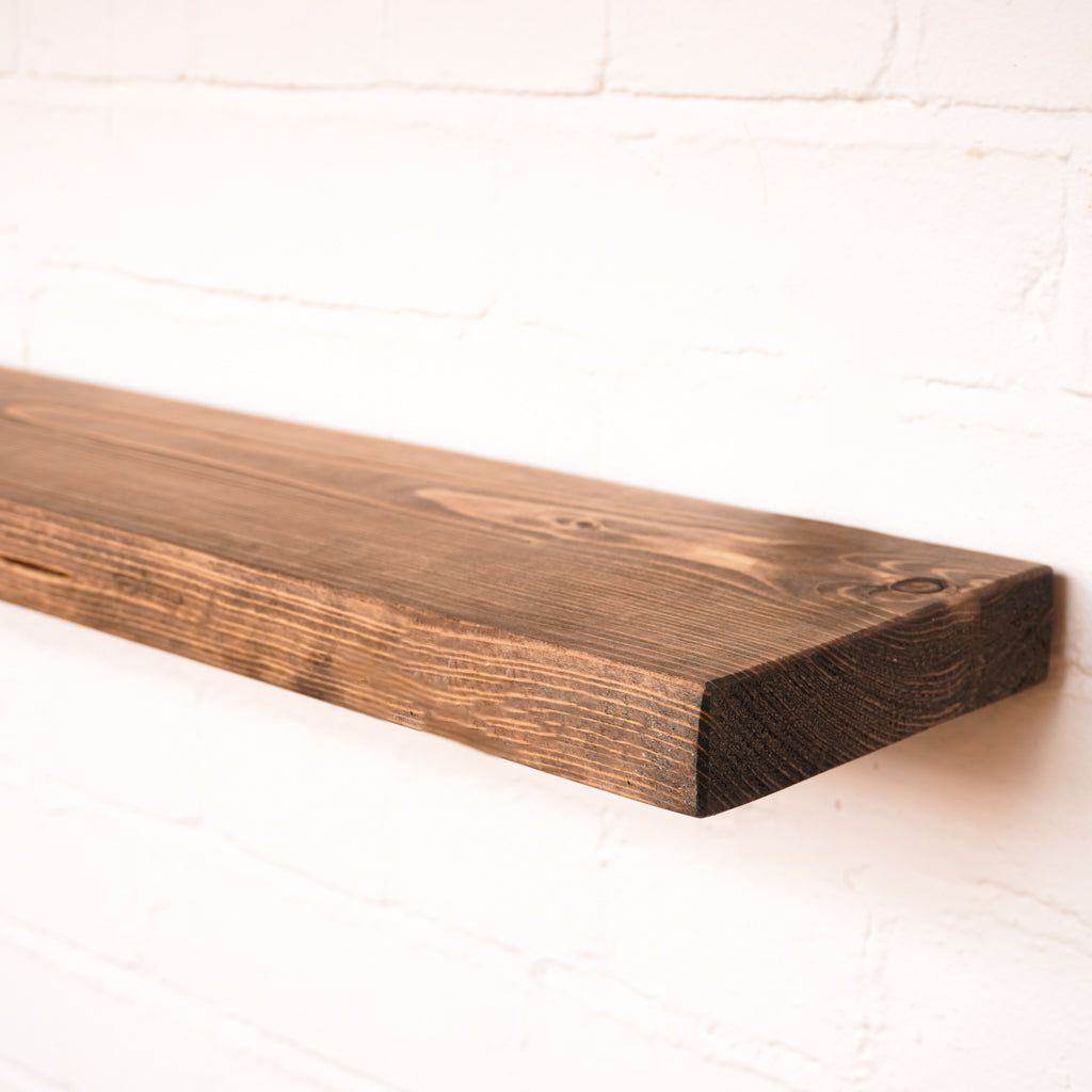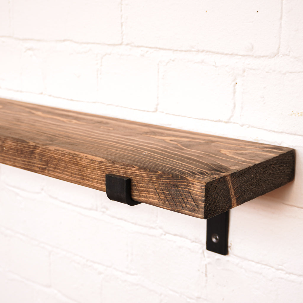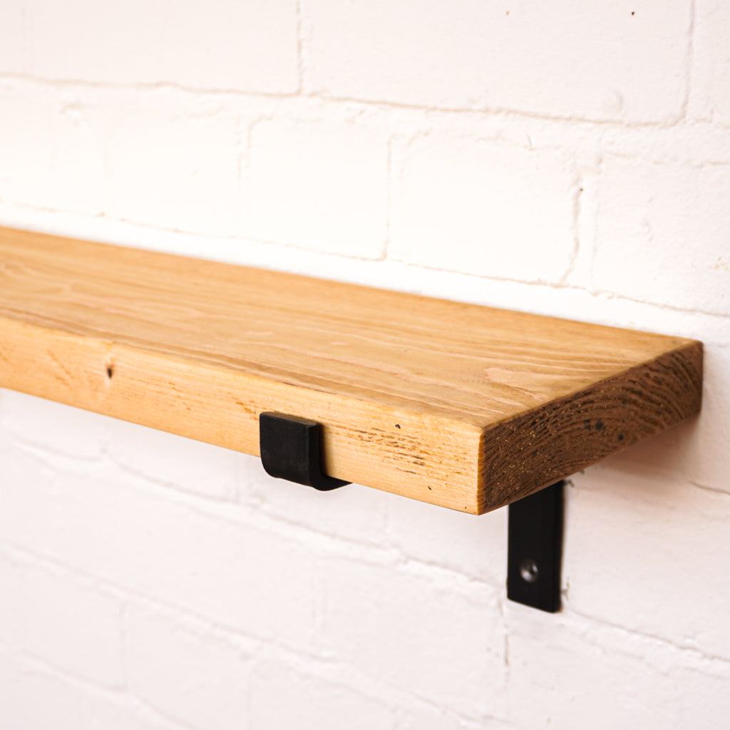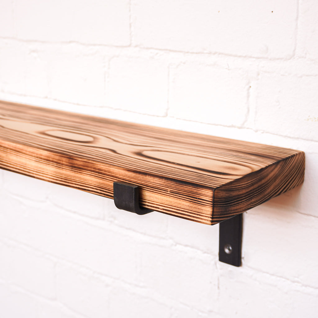 These are available in several different widths and lengths, with a range of finishes including our popular oiled or flamed finishes. We also offer different bracket options including the classic industrial-style hanging and propped style brackets, or a modern floating bracket.