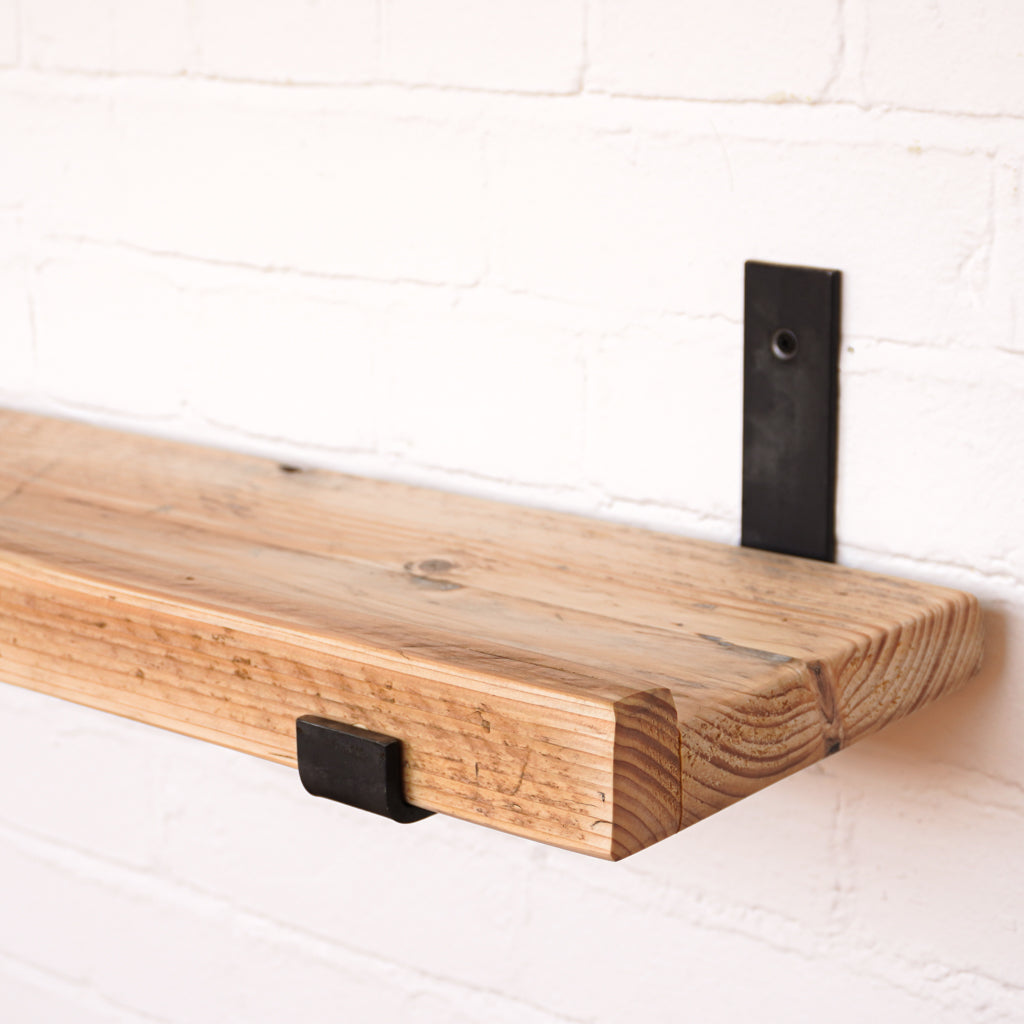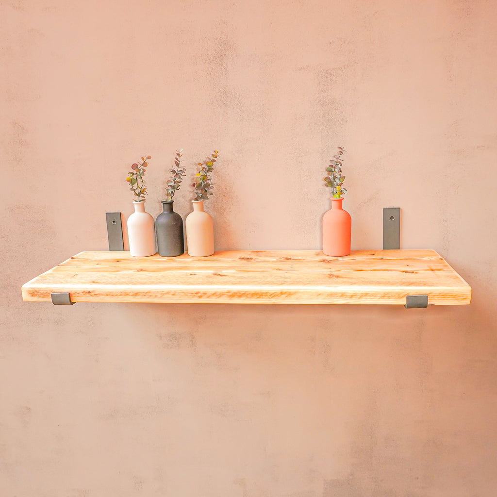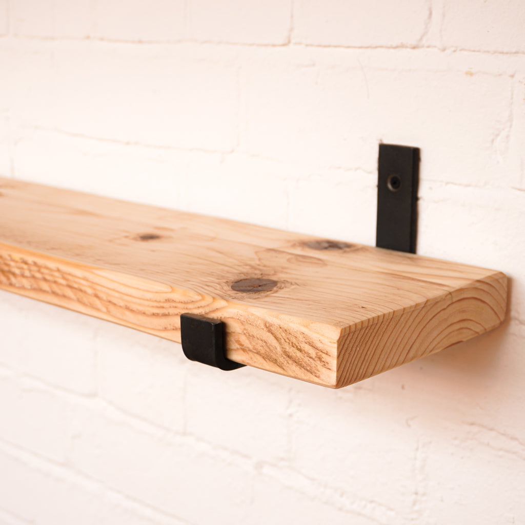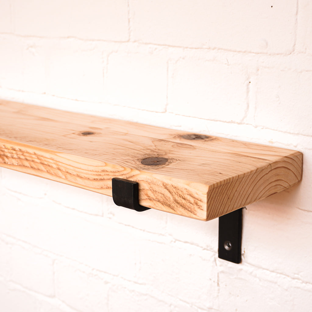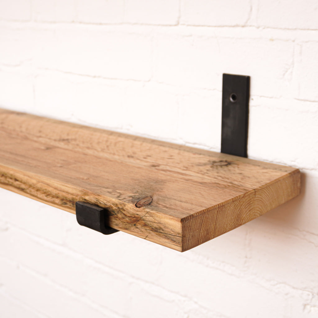 This is where we offer a selection of scaffold board shelf kits in several different widths, thicknesses and lengths, and with a range of finishes including our popular oiled or flamed finishes. We also offer different bracket options including the classic industrial-style hanging and propped style brackets, or a modern floating bracket.