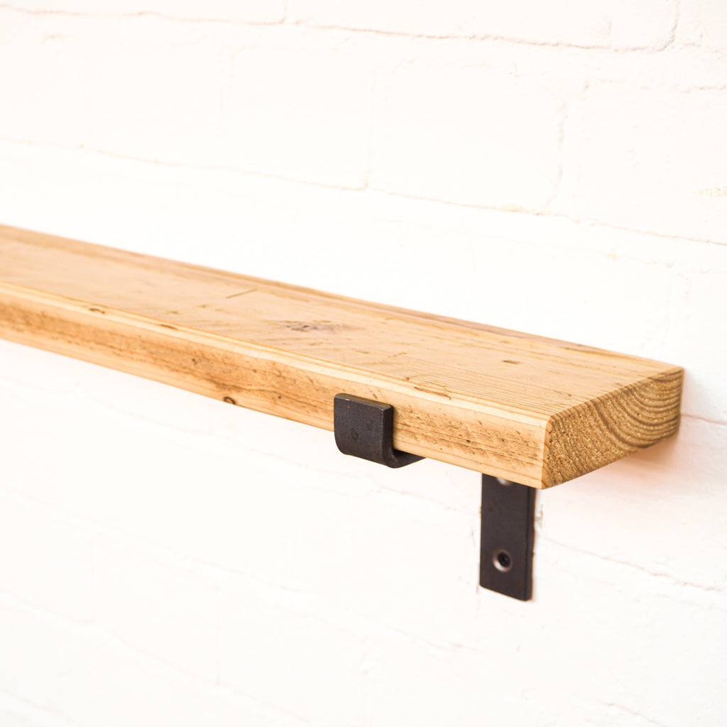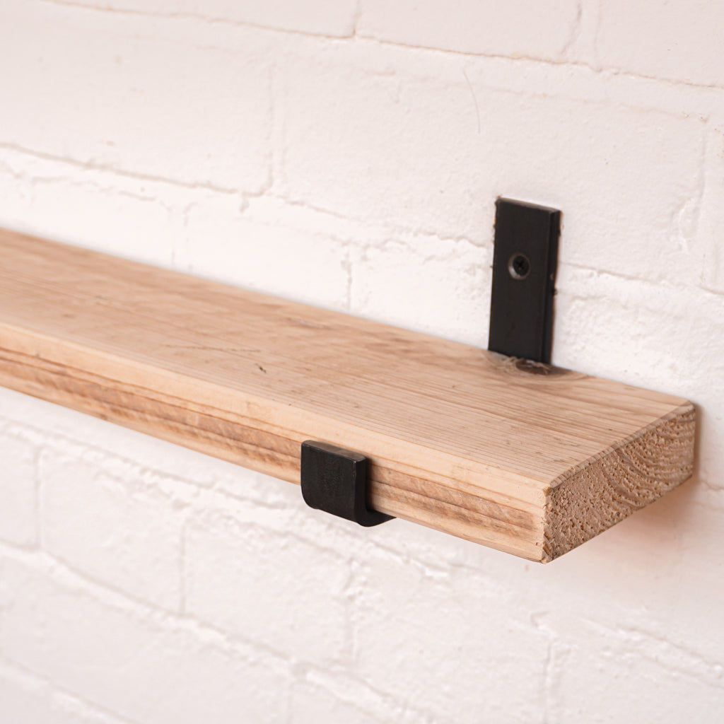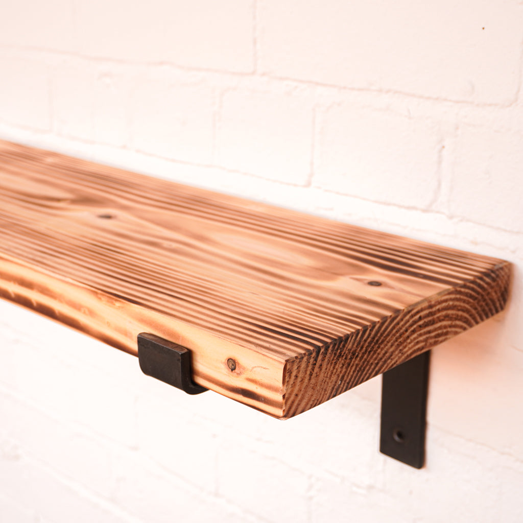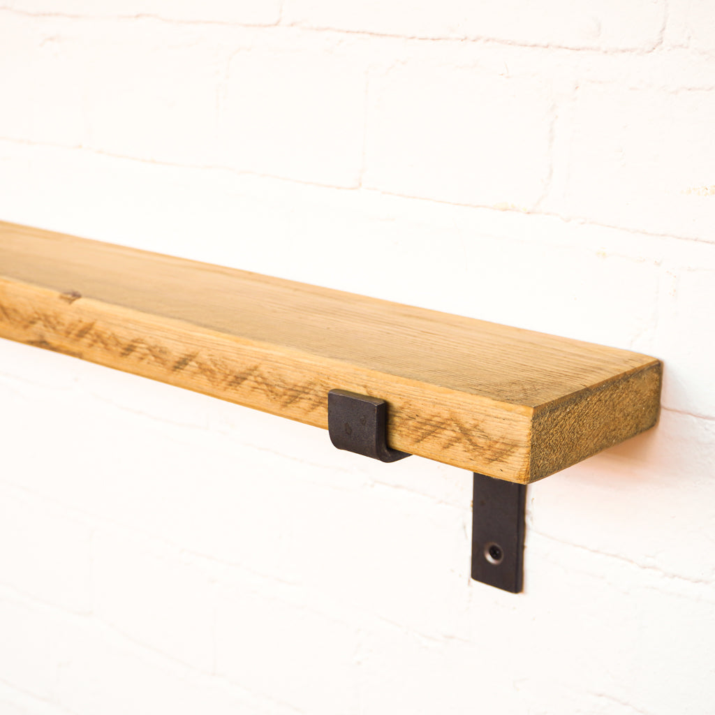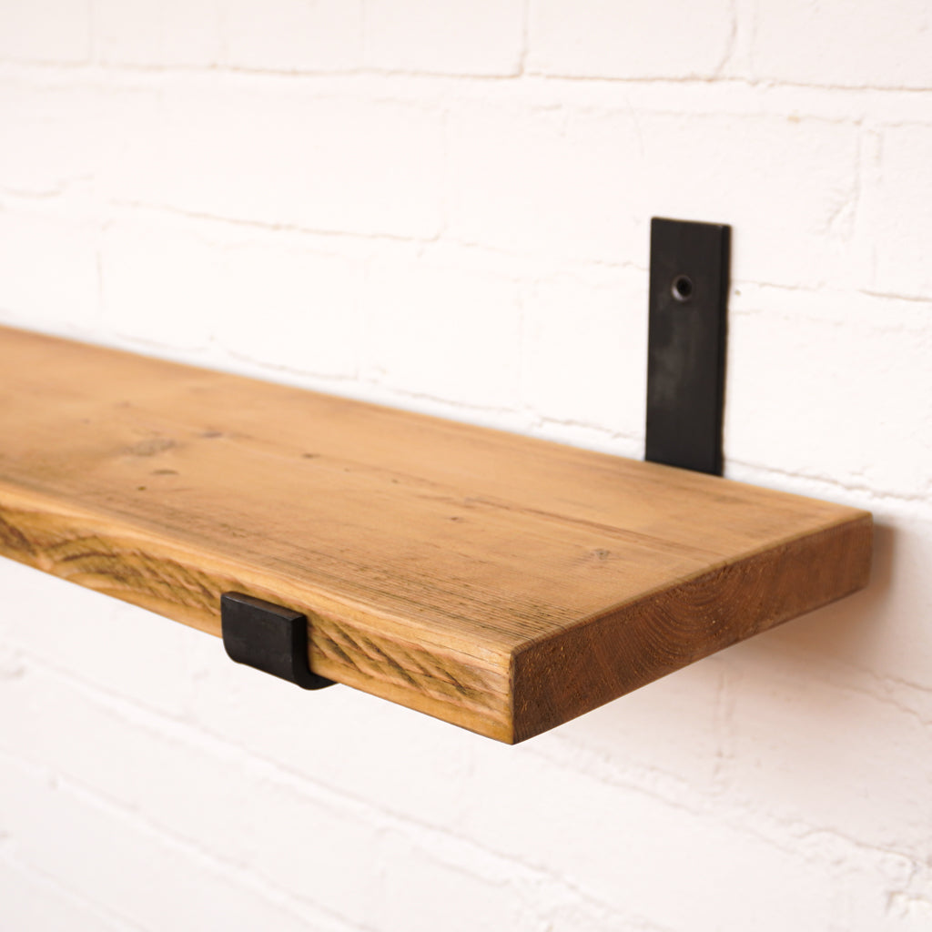 This is where we offer a selection of scaffold board shelf kits in several different widths, thicknesses and lengths, and with a range of finishes including our popular oiled or flamed finishes. We also offer different bracket options including the classic industrial-style hanging and propped style brackets, or a modern floating bracket.