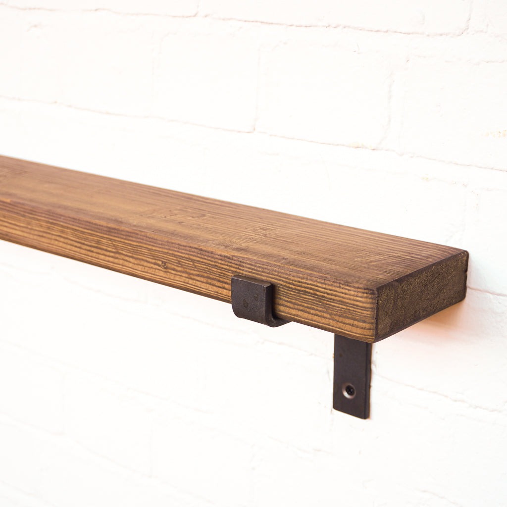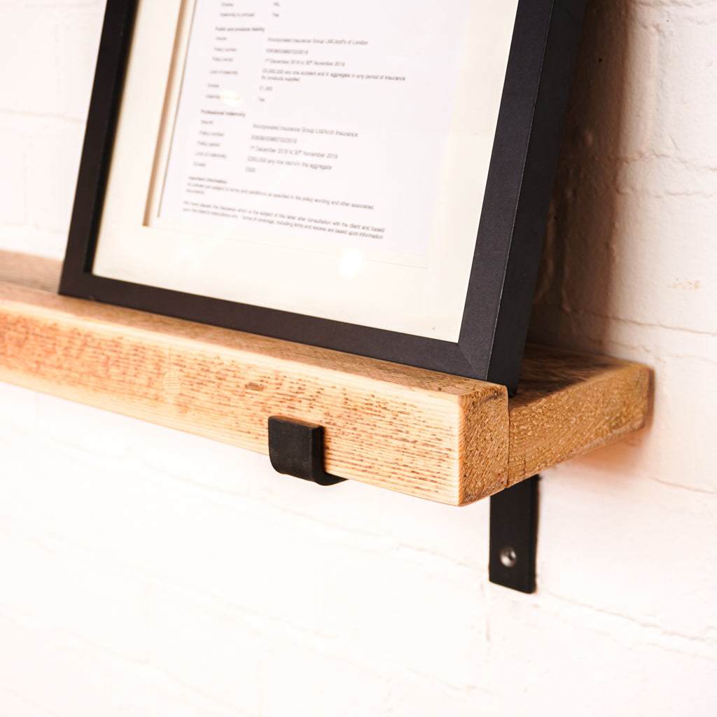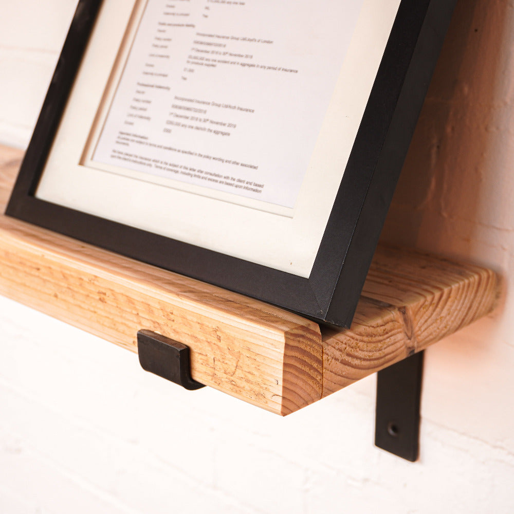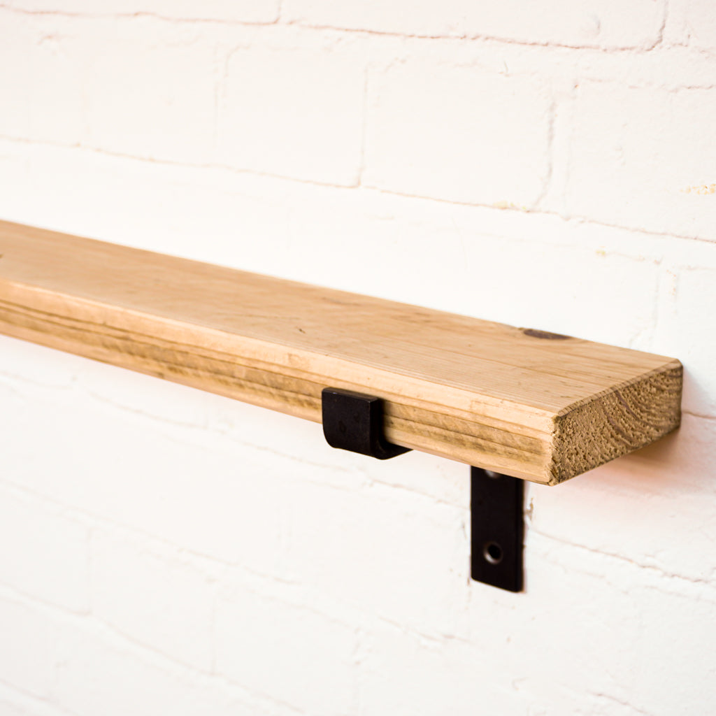 This is where we offer a selection of scaffold board shelf kits in several different widths, thicknesses and lengths, and with a range of finishes including our popular oiled or flamed finishes. We also offer different bracket options including the classic industrial-style hanging and propped style brackets, or a modern floating bracket.