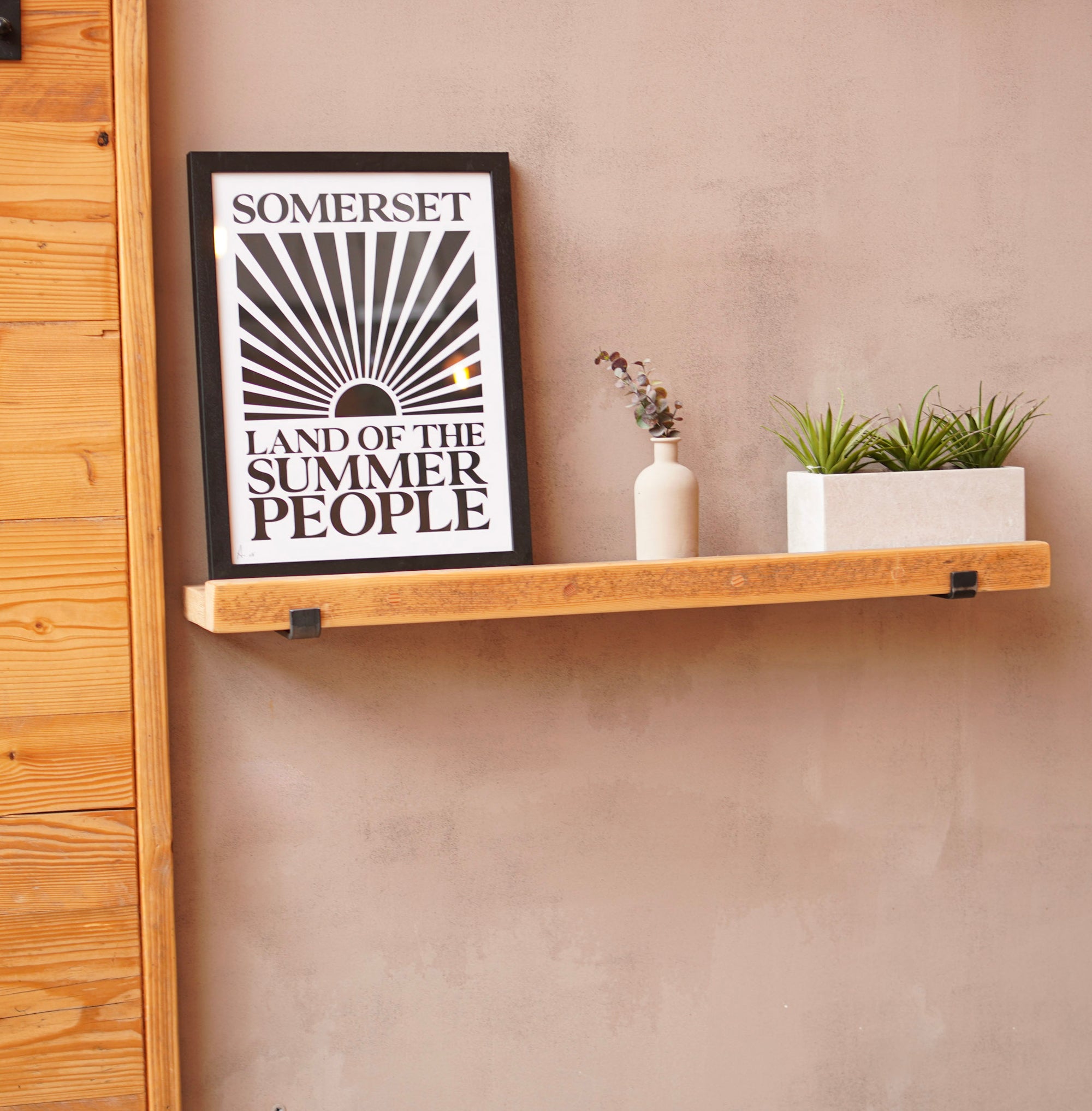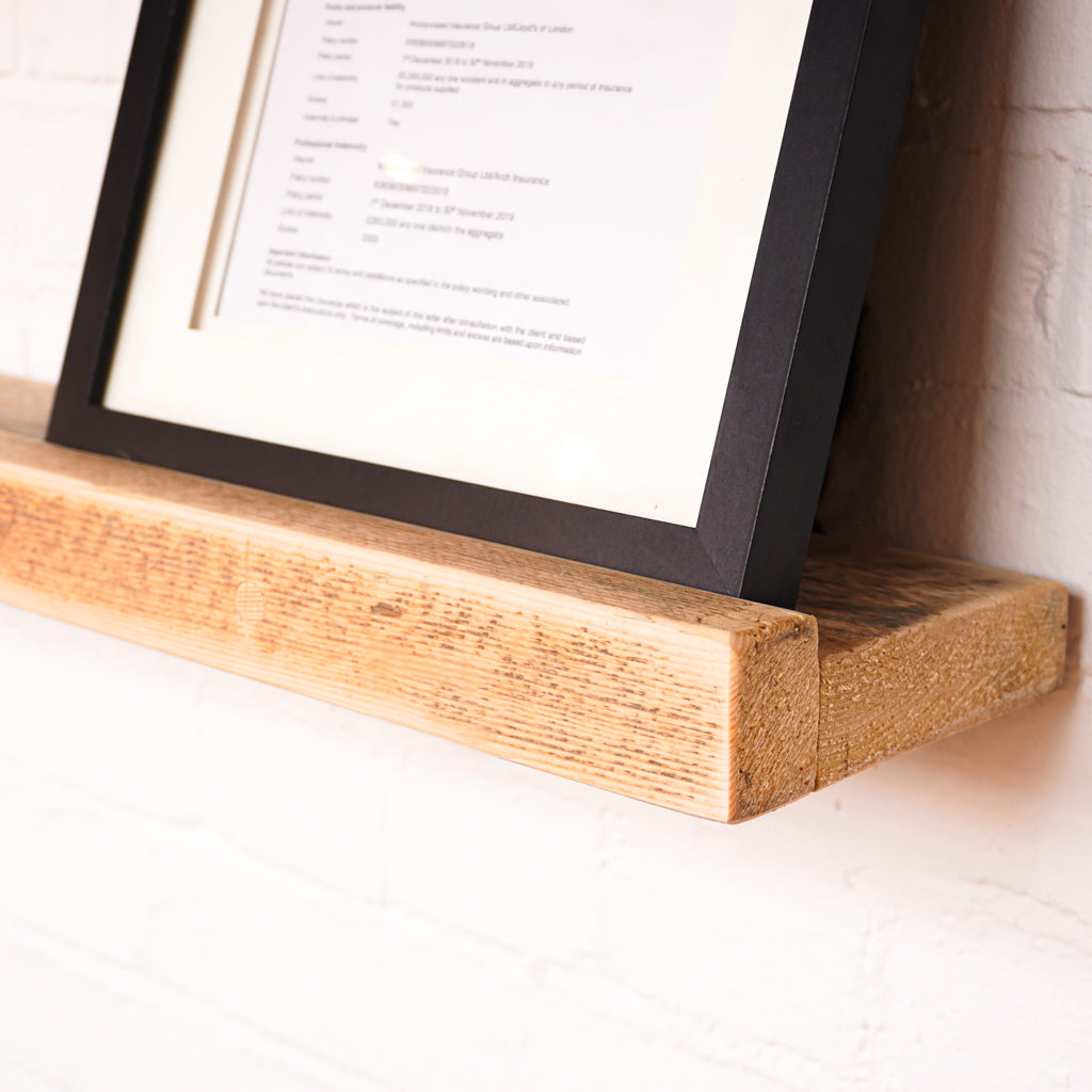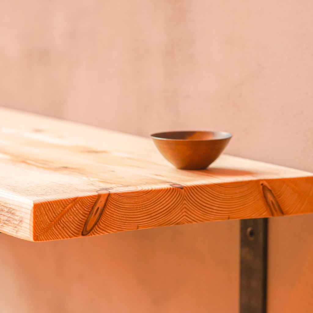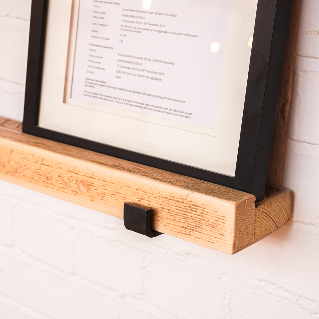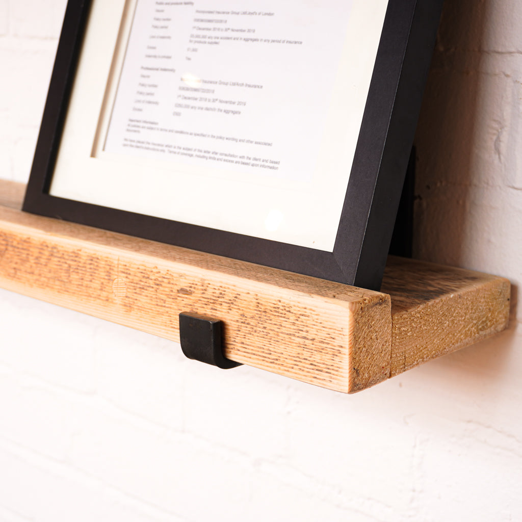 This is where we offer a selection of scaffold board shelf kits in several different widths, thicknesses and lengths, and with a range of finishes including our popular oiled or flamed finishes. We also offer different bracket options including the classic industrial-style hanging and propped style brackets, or a modern floating bracket.